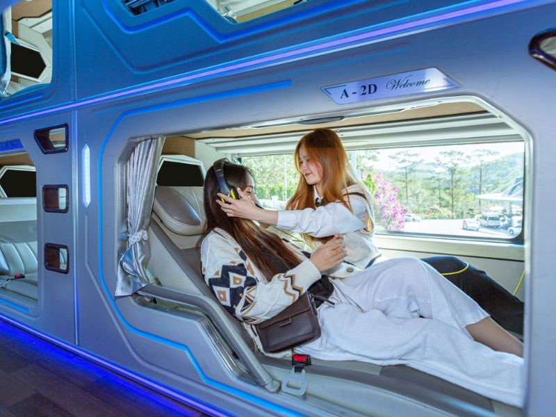 - Ghế ngồi rộng rãi, tiện nghi: Với không gian rộng rãi, ghế ngồi bọc da êm ái, có chức năng ngả lưng và hệ thống massage nhẹ nhàng, bạn sẽ được thư giãn hoàn toàn. Mỗi ghế còn được trang bị cổng sạc USB, đèn đọc sách và rèm che riêng tư, giúp hành trình của bạn trở nên thoải mái hơn bao giờ hết.